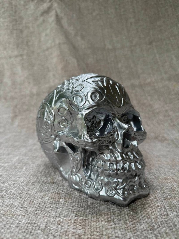 Der Skull wird aus nachhaltigem PLA gedruckt, versiegelt und anschließend individuell gestaltet.